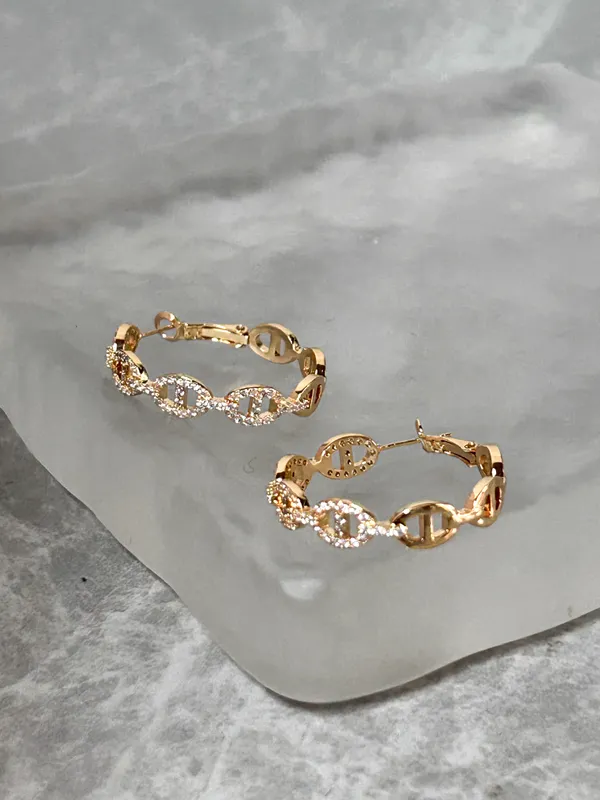 經典鏤空豬鼻子鑲鑽大圈圈耳環