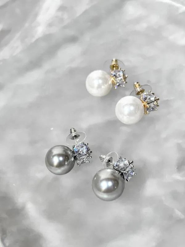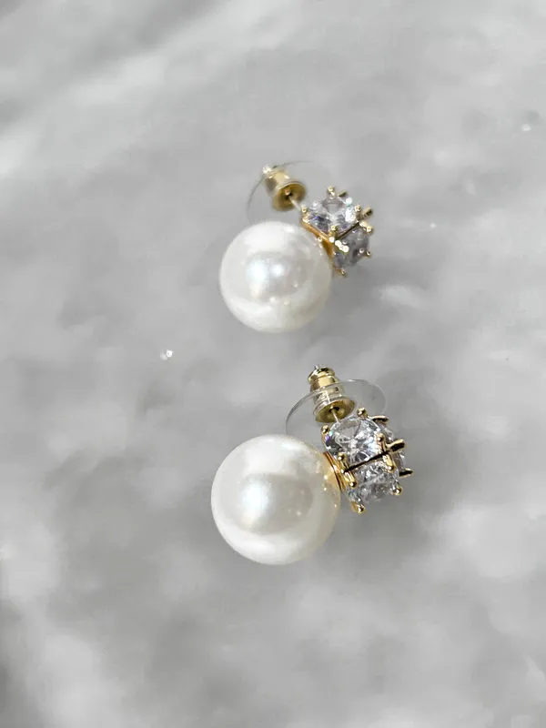 飽滿珍珠鋯石耳環