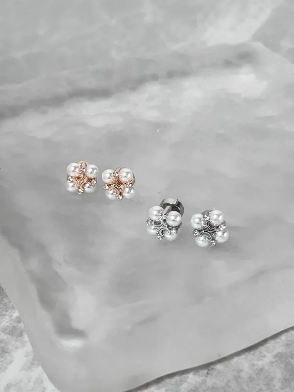 凱旋門珍珠鑽飾耳環