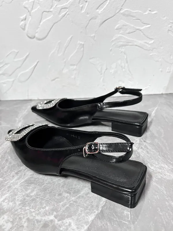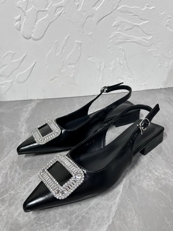 華麗水鑽方扣尖頭平底鞋|送美足神器+襪子