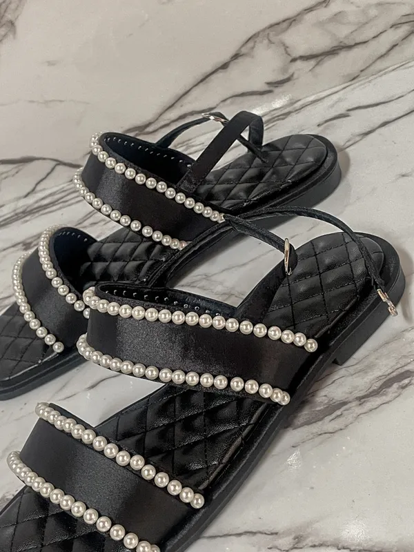 實品拍攝|材質:綢緞+人造皮革+橡膠鞋底