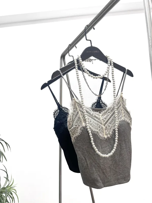 BRATOP在(帶胸堆)法式蕾絲背心