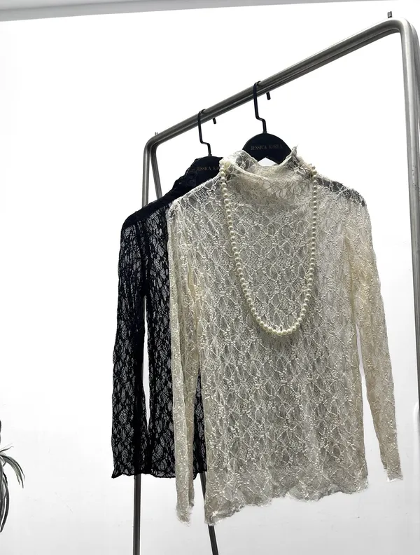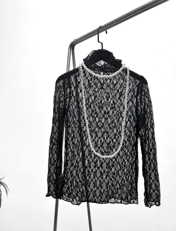 性感立領緹花長袖上衣
