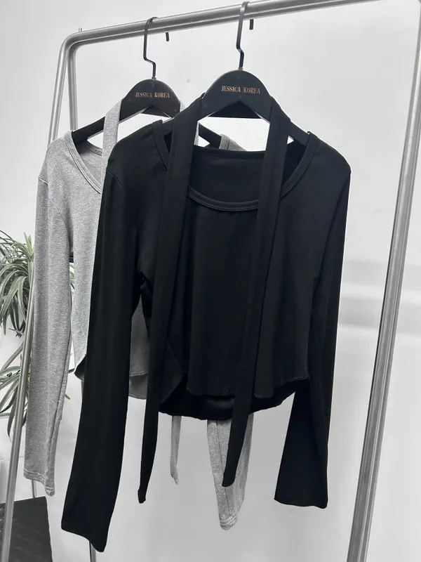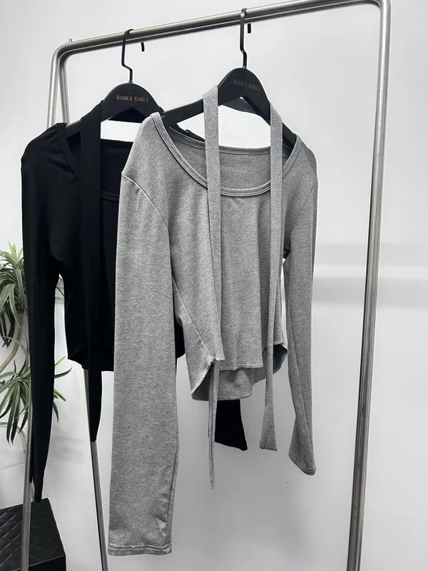 百搭可拆式圍巾長袖上衣