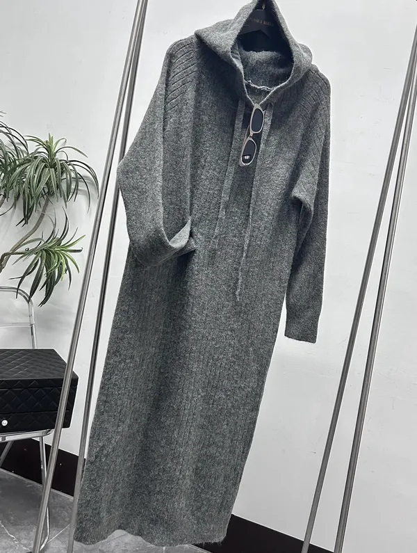 韓妞連帽毛衣長洋