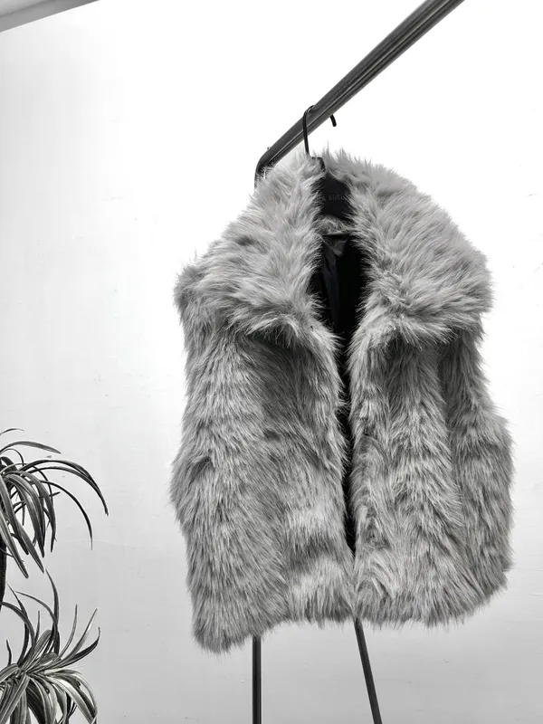 時髦仿皮草翻領背心