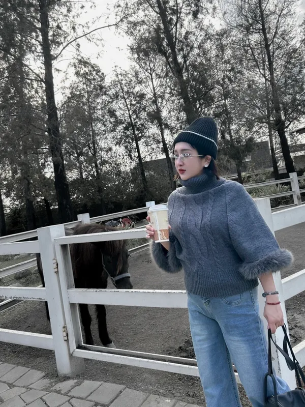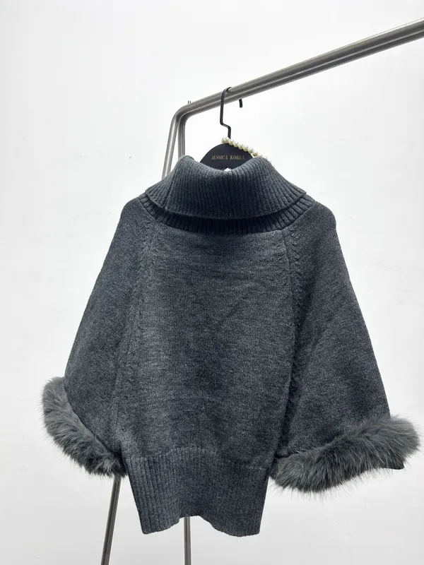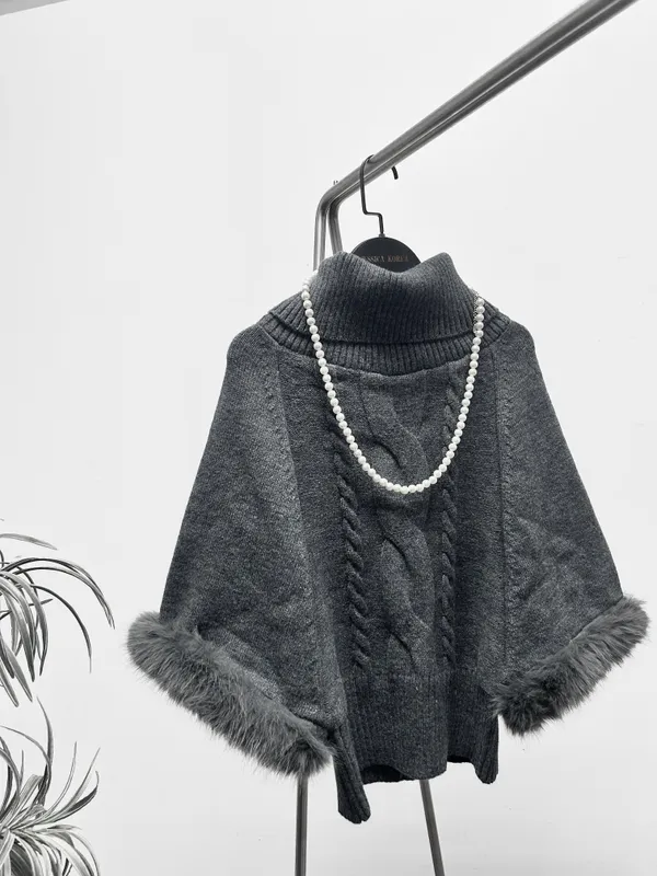 氣場毛邊斗篷高領針織