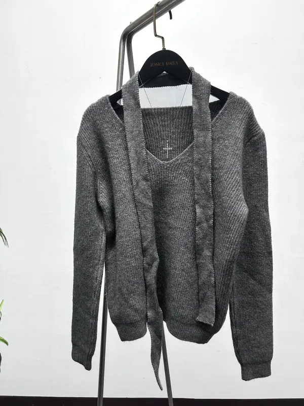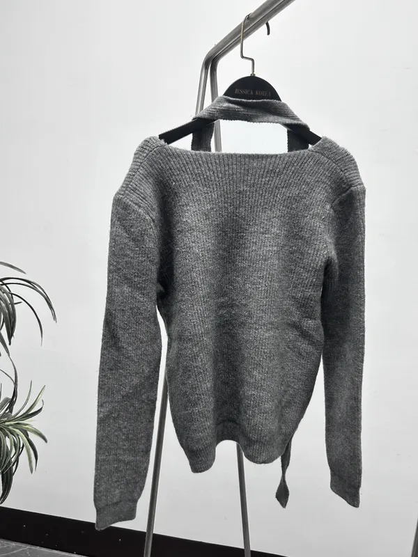優雅繞帶V領針織毛衣