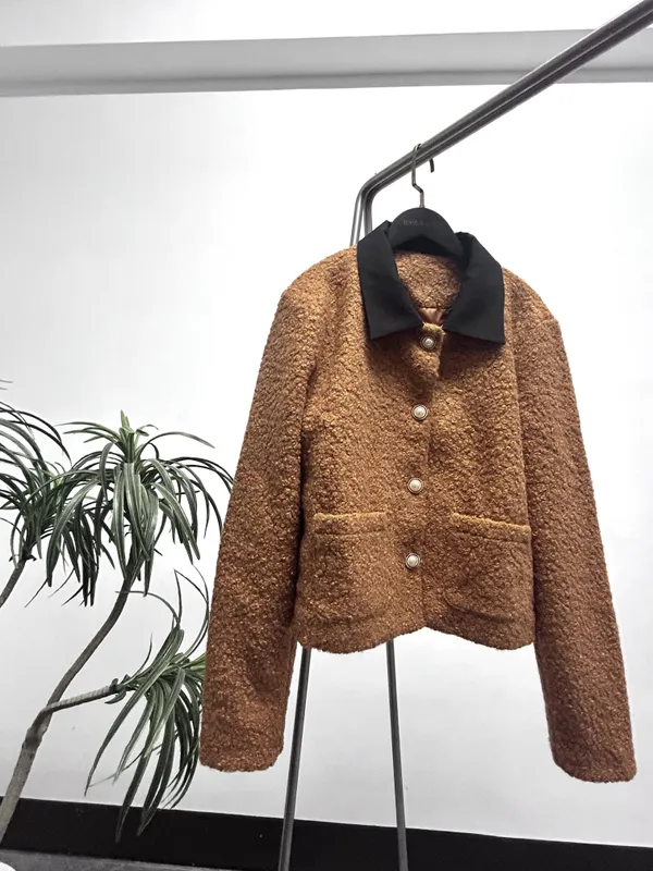 可可羊絨感撞色領短版外套